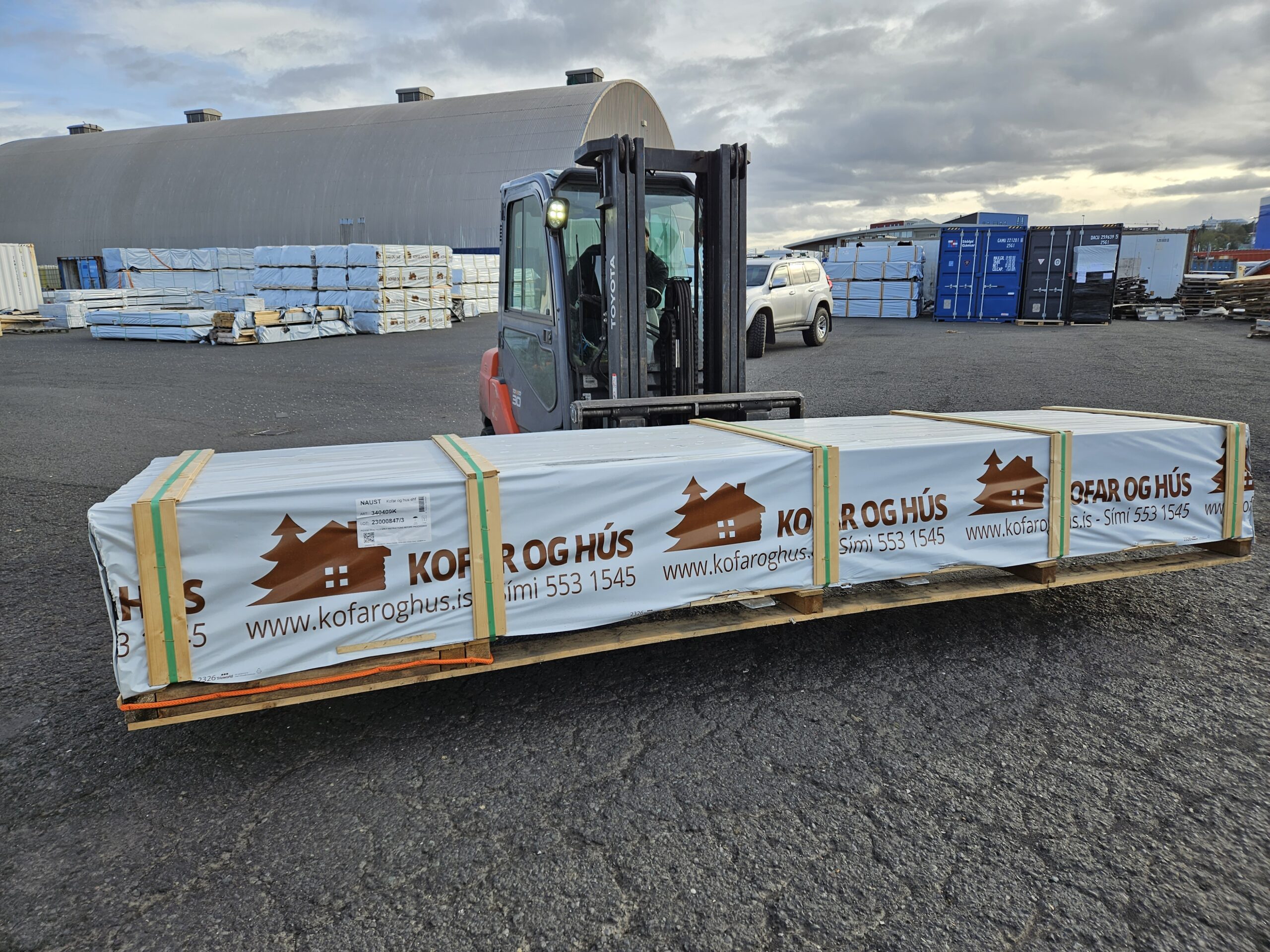 Húsin koma ósamsett, pökkuð inn í plast og vel útbúin til flutnings. Húsin eru vel varin í pakkningunni og geymast vel utandyra.